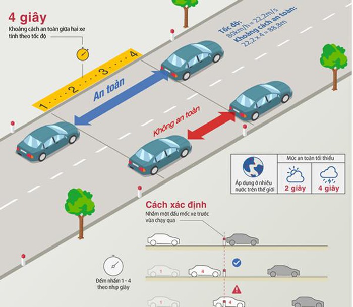 Điều này rất quan trọng bởi trong điều kiện mưa, tầm nhìn bị hạn chế, việc tạo khoảng cách xe an toàn với xe khác sẽ tránh được nhưng tai nạn đáng tiếc xảy ra. Hoặc nếu có sự cố xảy ra thì bạn vẫn đủ thời gian để xử lý.