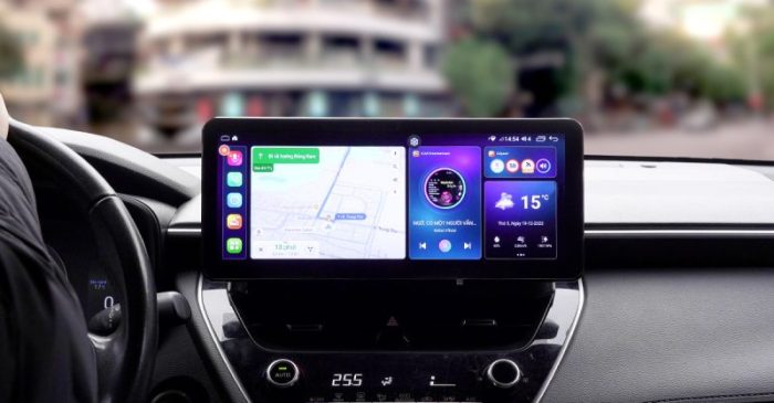 - Bước 1: Tháo cụm màn hình nguyên bản xe bằng dụng cụ chuyên dụng.