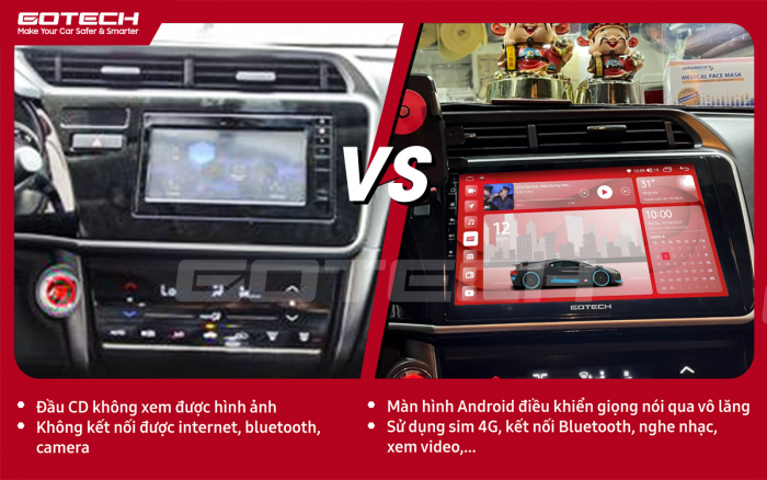 So sánh ảnh trước và sau khi lắp đặt màn hinh GOTECH cho xe Honda