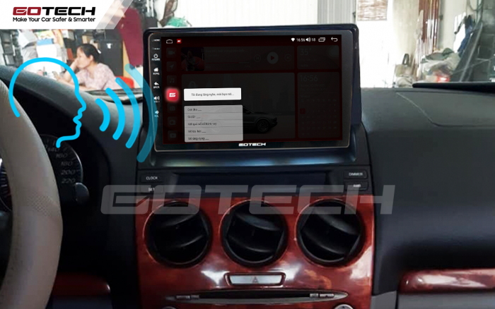Màn hình ô tô thông minh Gotech được thiết lập một phần mềm được phát triển bởi đội ngũ lập trình giàu kinh nghiệm của Gotech mang tên “Gotech Assistant”. Với phần mềm này các anh có thể ra lệnh cho màn hình bằng bằng giọng với ngôn ngữ tiếng Việt đa dạng. Với phần mềm trợ lý ảo này, các anh có thể ra lệnh nghe gọi, mở nhạc, mở radio, xem truyền hình dễ dàng chỉ bằng 1 nút bấm trên vô lăng.