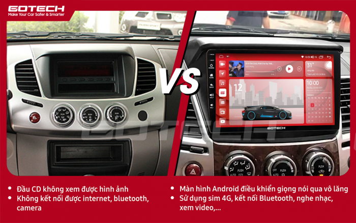 Triton 2010-2014 có hệ thống giải trí trên xe bao gồm màn hình hiển thị đa thông tin thông minh. Trên đầu DVD bạn chỉ có thể nghe nhạc, nghe VOV giao thông hay một số các chức năng thông dụng khác. Các tính năng mới phục vụ cho quá trình lái xe đặc biệt là lái xe đường giải như chỉ đường, nghe nhạc hay ra lệnh giọng nói thì đầu DVD này không thể đáp ứng được. Màn hình ô tô Gotech cho xe Triton  2010-2014 là một giải pháp giúp bạn có thể trải nghiệm được nhiều điều thú vị hơn, thư giãn và thoải mái hơn khi lái xe.
