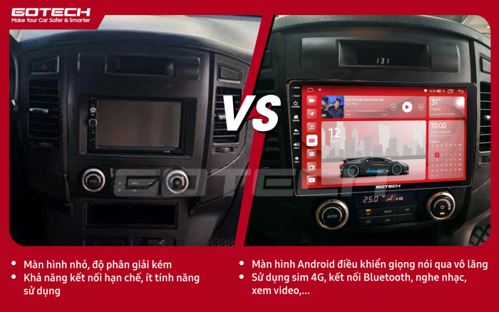 Như các anh đã biết, ở những xe Pajero đời cũ hệ thống giải trí chỉ có nghe đài FM, cầu cắm USB nghe nhạc. Những tiện nghi trên xe rất hạn chế, vì vậy lắp đặt màn hình ô tô thông minh Gotech cho xe Pajero 2007-2012 là cần thiết.