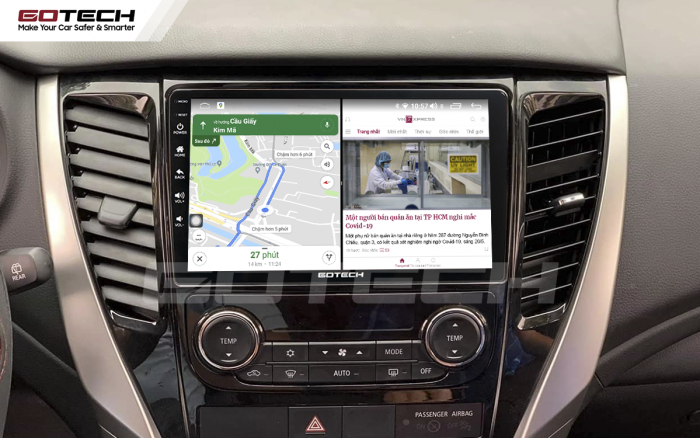 Màn hình ô tô thông minh Gotech cho xe Mitsubishi Pajero Sport 2011-2016