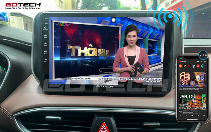 Màn hình GOTECH cho xe Hyundai Santafe 2019-2020 mang cả thế giới giải trí vào xe của bạn, đáp ứng mọi nhu cầu giải trí từ cơ bản đến nâng cao của bạn và khách hàng. Bạn có thể thỏa sức tải về và sử dụng các ứng dụng giải trí như nghe nhạc, xem video, đọc báo, theo dõi tin tức, cập nhật giao thông… ngay trên xe mà không có bất kỳ trở ngại nào.