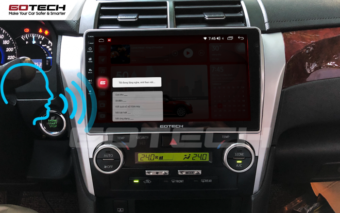 Màn hình ô tô thông minh Gotech cho xe Toyota Camry 2015-2018 tích hợp nhiều tính năng hiện đại như: kết nối sim 4G tốc độ cao, giải trí trực tuyến, tích hợp các dòng camera phụ trợ và hỗ trợ ra lệnh giọng nói bằng trợ lý ảo Gotech Assistant thông minh với ngôn ngữ vô cùng linh hoạt.
