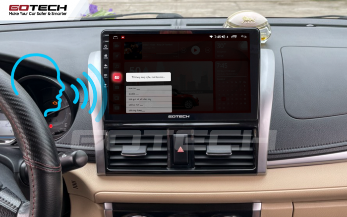 Màn hình ô tô Gotech là dòng sản phẩm đầu tiên hỗ trợ ra lệnh giọng nói với ngôn ngữ tiếng Việt linh hoạt, không cần câu lệnh có sẵn. Nhờ Gotech Assisntant mà Gotech được đánh giá vượt trội hơn hẳn so với các dòng màn hình trước đây trên thị trường. Bạn có thể ra lệnh giọng nói để mở cam hành trình, cảm biến áp suất lốp, nghe nhạc hay chỉ đường, …